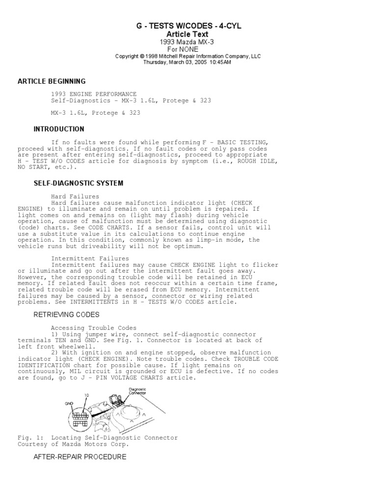 Diagnostic Codes 4 Cyl Complete Vehicle Technology Mechanical