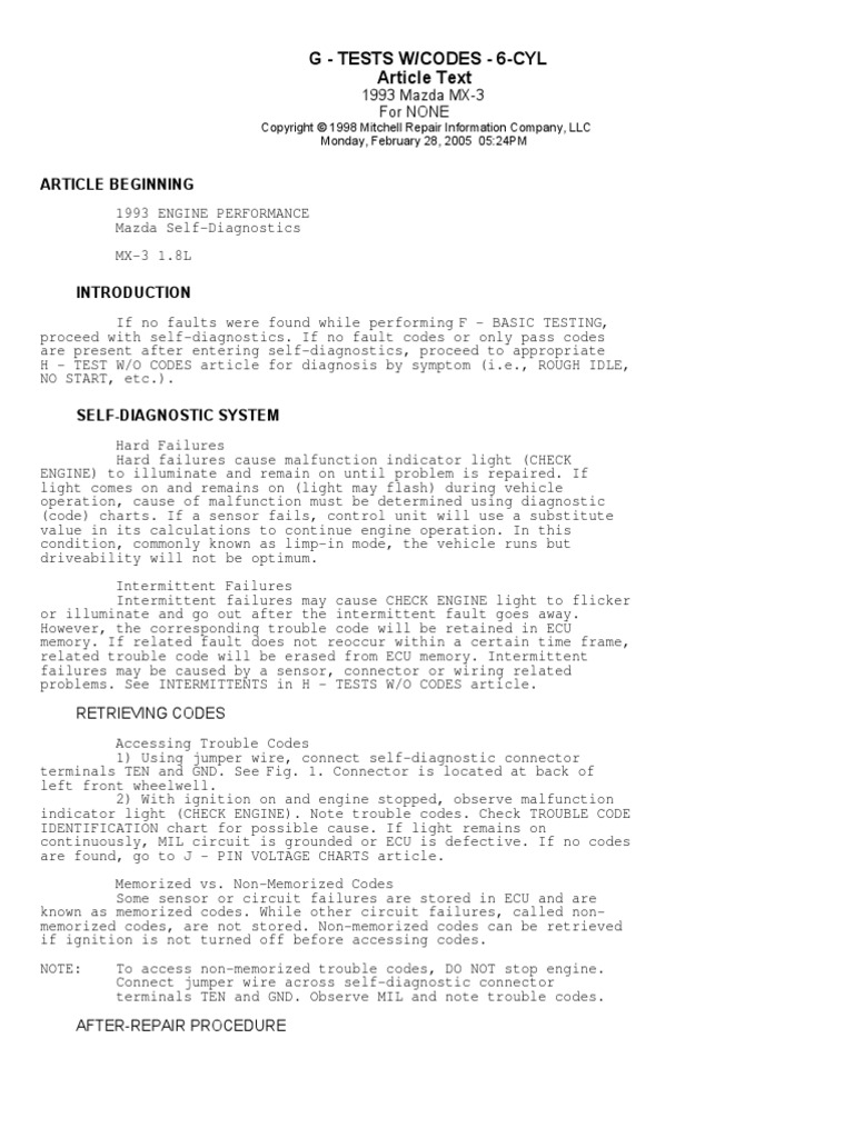 Mazda 6 Check Engine Light Codes